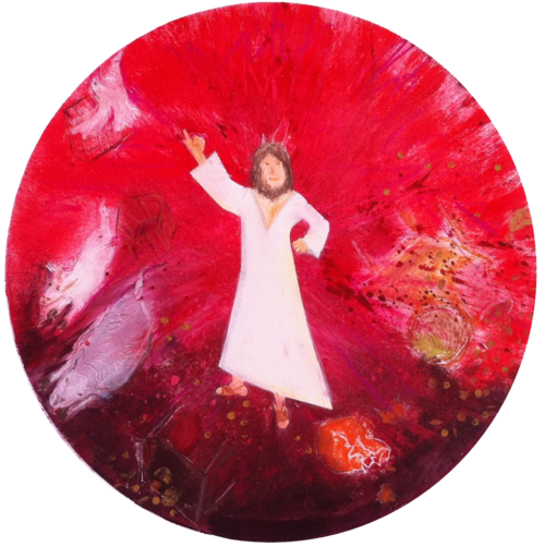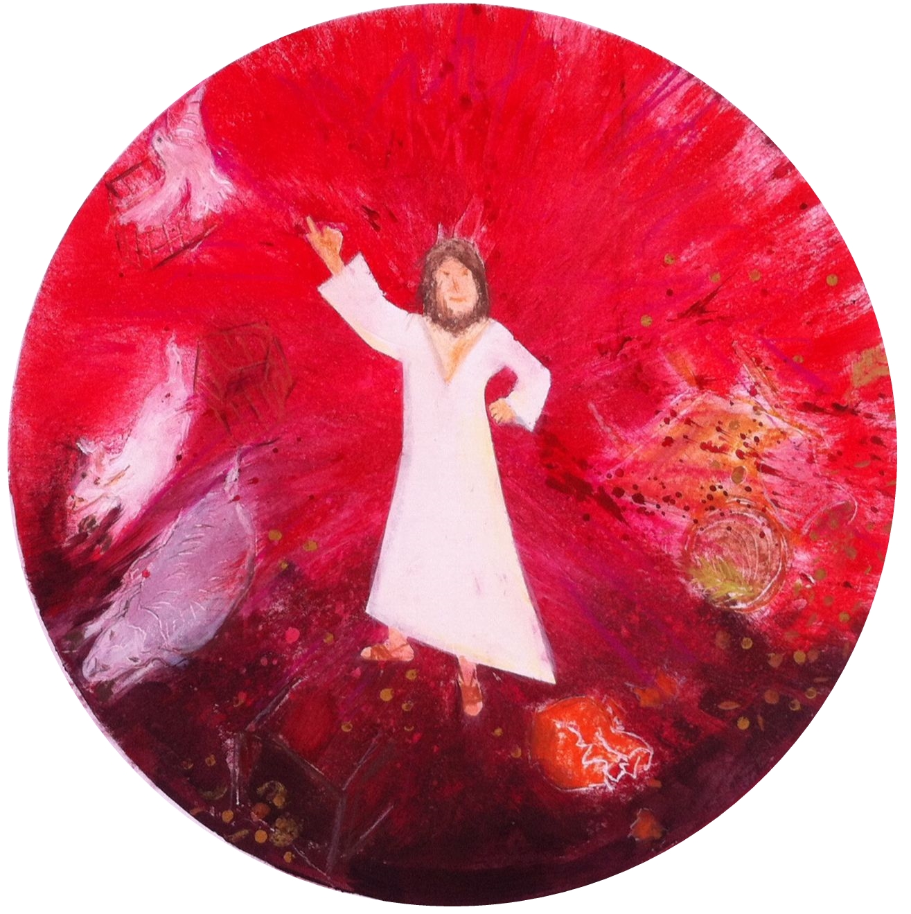 In der Mitte der Mann im weißen Gewand.