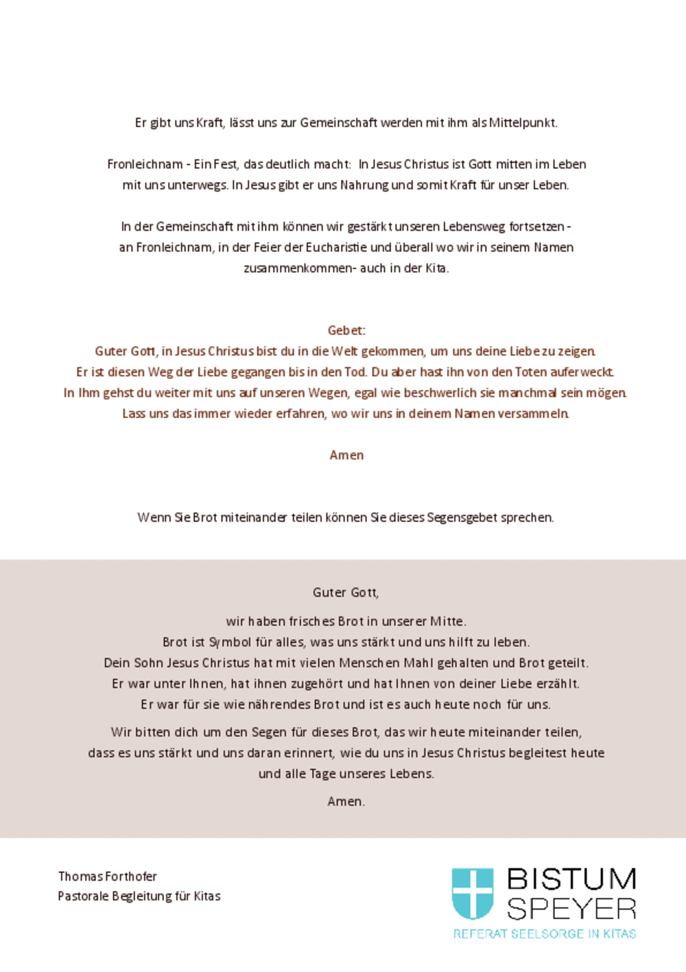 Aktionsseite des Referates Seelsorge in Kitas