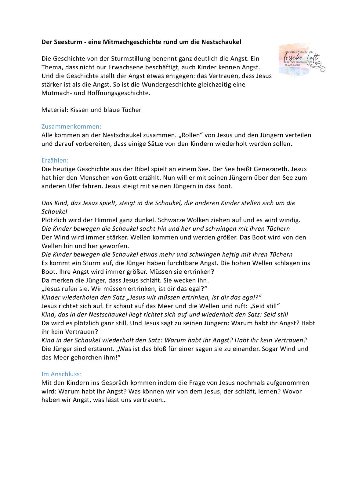 Aktionsseite des Referates Seelsorge in Kitas